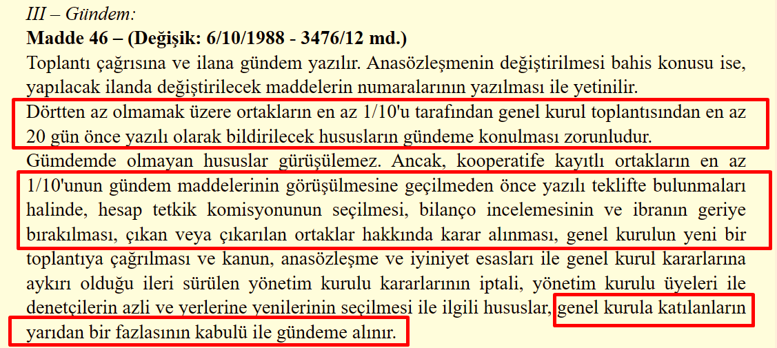 1163 Sayılı KOOPERATİFLER KANUNU’nda yer verilen düzenlemedir. Yasada iki maddede söz edilmektedir:
